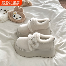 白色松糕厚底加绒保暖勃肯鞋女2025秋冬季新款增高雪地靴毛毛棉鞋