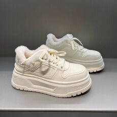 欧洲站2025冬季新款真皮休闲厚底松糕鞋增高加绒小白鞋女白色棉鞋