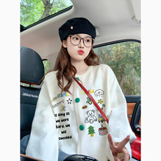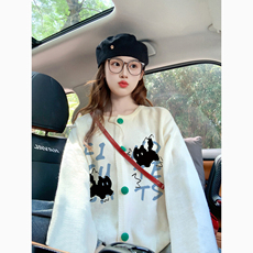 白色卡通潮牌印花开衫毛衣外套女秋季小众宽松慵懒高级感针织上衣