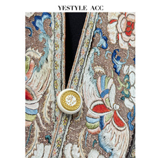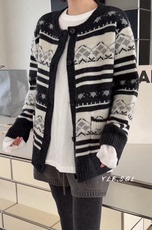 1517诗歌兰女装2025秋冬款气质黑白色复古花纹纽扣开衫口袋毛衣女