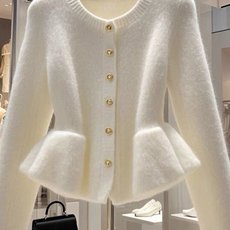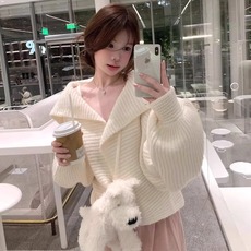 秋季灯笼袖白色羊毛针织衫外套女宽松慵懒风毛衣开衫