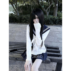 JK制服针织衫白色开衫毛衣外套简约慵懒风上衣水手服女中间服套装