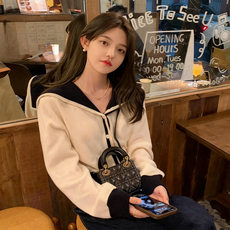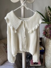 日本OFFCAT慵懒海军领白色毛衣外套女秋温柔韩系休闲宽松针织开衫