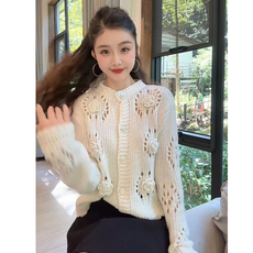 巨好看的白色镂空立体花朵针织开衫女秋冬季毛衣外套早秋chic上衣