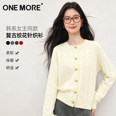 one more针织衫女士秋季2025新款小个子针织开衫白色毛衣外套Y