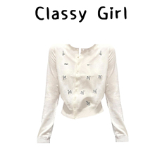 热风打底衫2025年春季新款女士彩钻针织开衫圆领毛衣白色气质外套
