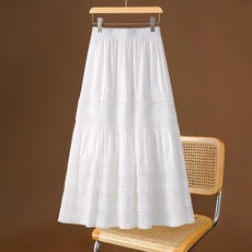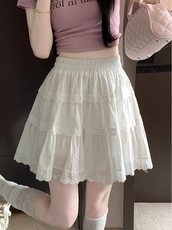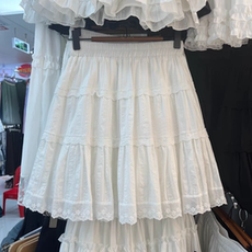 刺绣白色蕾丝花边蛋糕短裙女秋季新款松紧高腰a字防走光小短裙子