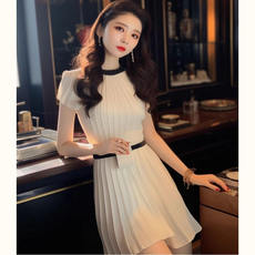 白色百叶半身裙女新款风琴百褶裙蝴蝶结a字短裙防走光高腰显瘦