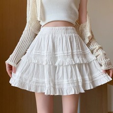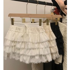 白色蕾丝蛋糕蓬蓬裙女甜美半身裙A字裙高腰显瘦防走光芭蕾风短裙