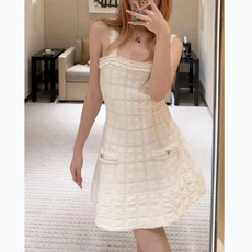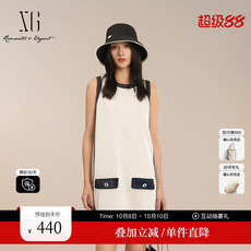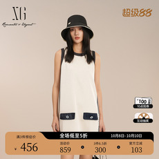 XG/雪歌XK204015A651白色无袖连衣裙2025夏季新款撞色A字短裙女装