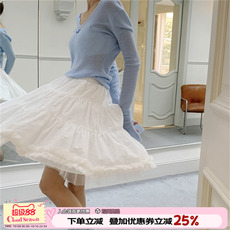 精灵家大码女装芭蕾风白色蛋糕裙半身蕾丝裙裤半裙a字裙蓬蓬短裙