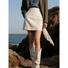 白色PU皮半身裙女2025年秋冬新款高腰显瘦包臀a字裙气质短裙子