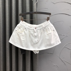 2024春夏新款半身裙白色牛仔不规则荷叶边a字裙高腰短裙女防走光