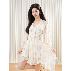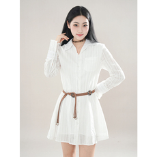 白色长袖衬衫连衣裙女初春法式气质甜美学院风Polo领a字短裙子