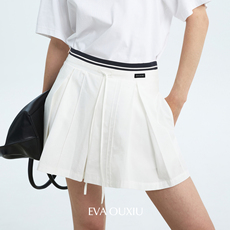 EVAOUXIU商场同款全棉压褶A字半裙简约白色短裙高腰百褶裙显瘦