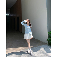 白色西装短裙女小个子夏季高腰显瘦设计感防走光开叉a字半身裙裤