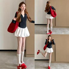 白色芭蕾风蛋糕半身裙女秋冬高腰显瘦松紧腰A字裙蓬蓬百搭短裙子