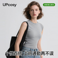 纯棉修身背心女内搭短袖一体式针织白色无袖坎肩打底上衣外穿高领