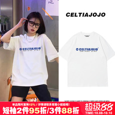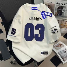 FTBHFIN夏季T恤高街潮酷数字印花短袖ins白色男女纯棉上衣