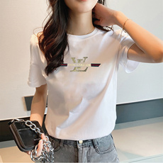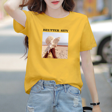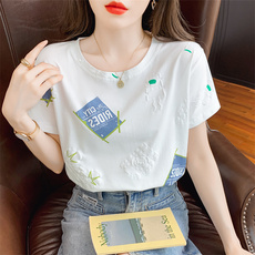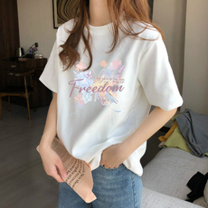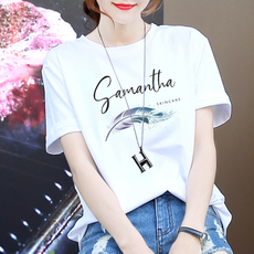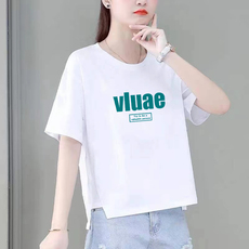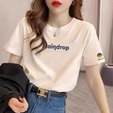 2025夏装新款白色女t恤短袖字母印花纯棉大码宽松韩版修身圆领潮