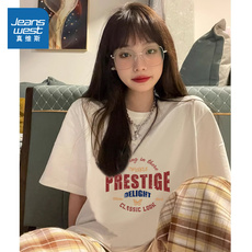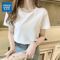 KHV真维斯白色纯棉短袖t恤女正肩夏季2025年新款爆款宽松半袖上衣