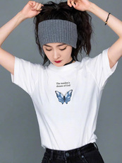 去有风的地方刘亦菲同款蝴蝶上衣女夏季宽松白色休闲纯棉短袖t恤