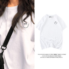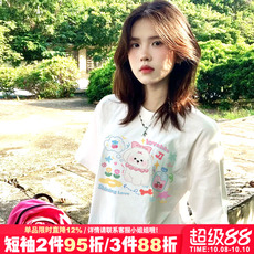 美式学院风小众设计感卡通潮牌白色短袖t恤女宽松大版纯棉上衣夏