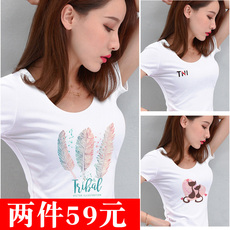 白色印花t恤女短袖2024新款夏半袖体恤紧身打底修身显瘦纯棉字母T