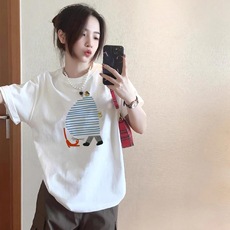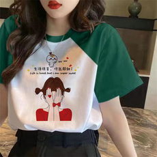 韩国ulzzang可爱卡通白色正肩短袖t恤女韩版宽松纯棉夏季半袖上衣