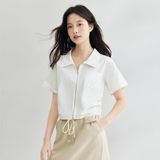 夏日精致设计感小众polo领白色正肩纯棉短袖t恤女2025年新款夏季