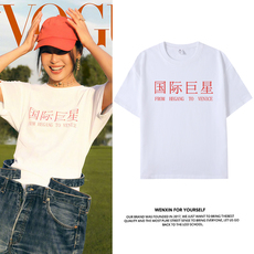 辛芷蕾国际巨星同款白色短袖T恤男女周边复古国潮半袖纯棉上衣服
