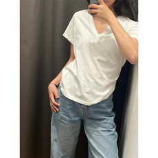 魔西女王宽松T恤2024夏季新款女白色纯棉V领短袖慵懒休闲半袖上衣