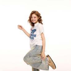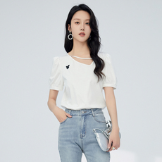 KMV真维斯白色短袖t恤女韩系chic别致上衣纯棉宽松大码正肩女体恤