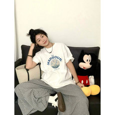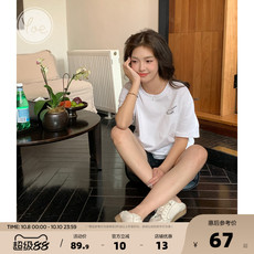 春也白夏新款100纯棉字母印花圆领短袖T恤女白色内搭宽松打底上衣