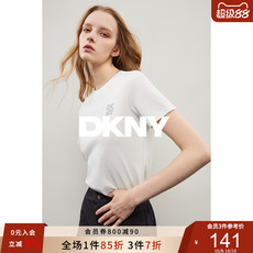 DKNY唐可娜儿2025夏季新款百搭纯棉白色刺绣亮片字母短袖T恤女