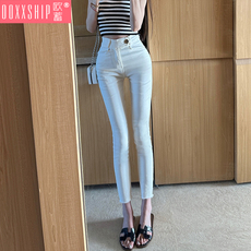 韩国代购darimi紧身白色休闲铅笔裤 高腰修身显瘦小脚牛仔长裤女