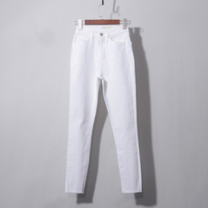 时尚韩版百搭白色牛仔裤性感修身显瘦弹力提臀高腰小脚铅笔长裤女