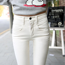 【温暖加绒】依旧显瘦白色小脚裤 三粒扣高腰弹力修身铅笔牛仔裤
