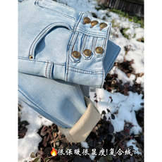 超厚款~浅色高腰加绒牛仔裤女冬季蓝白色弹力紧身显瘦小脚铅笔裤