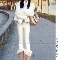 韩国代购darimi紧身白色加绒小脚靴裤女25秋冬修身加厚牛仔铅笔裤