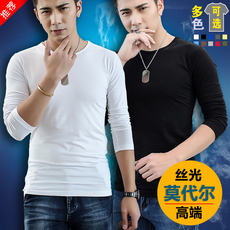 2件】莫代尔棉长袖t恤男夏季薄款紧身内搭白色春秋季修身打底衫男