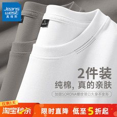 NG真维斯纯棉白色长袖T恤男秋季新款内搭潮流简约百搭圆领打底衫