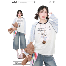 t恤女长袖白色纯棉宽松内搭打底衫2025秋季大码印花修身加厚加绒