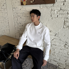 马克斯星球 极简风小标刺绣白色长袖T恤打底衫男秋新韩版宽松休闲