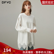 2025秋季新蕾丝拼接白色长袖T恤女打底衫上衣薄宽松简约纯棉镂空