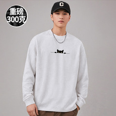 220g重磅长袖T恤男纯棉纯色宽松春秋款卫衣圆领白色内搭打底衫男