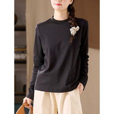 one more文墨长袖t恤女2025新款打底衫内搭纯棉白色宽松春季上衣Y