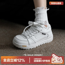 多嘴驴Donkey翻盖德训鞋女白色运动足弓赛车鞋秋冬休闲百搭小白鞋
