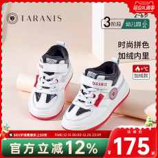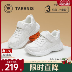 泰兰尼斯冬季新款儿童鞋子反光条白色运动鞋男童加绒女童休闲板鞋