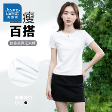 森马短袖t恤女短款修身正肩打底衫2025夏季新款白色显瘦上衣薄款